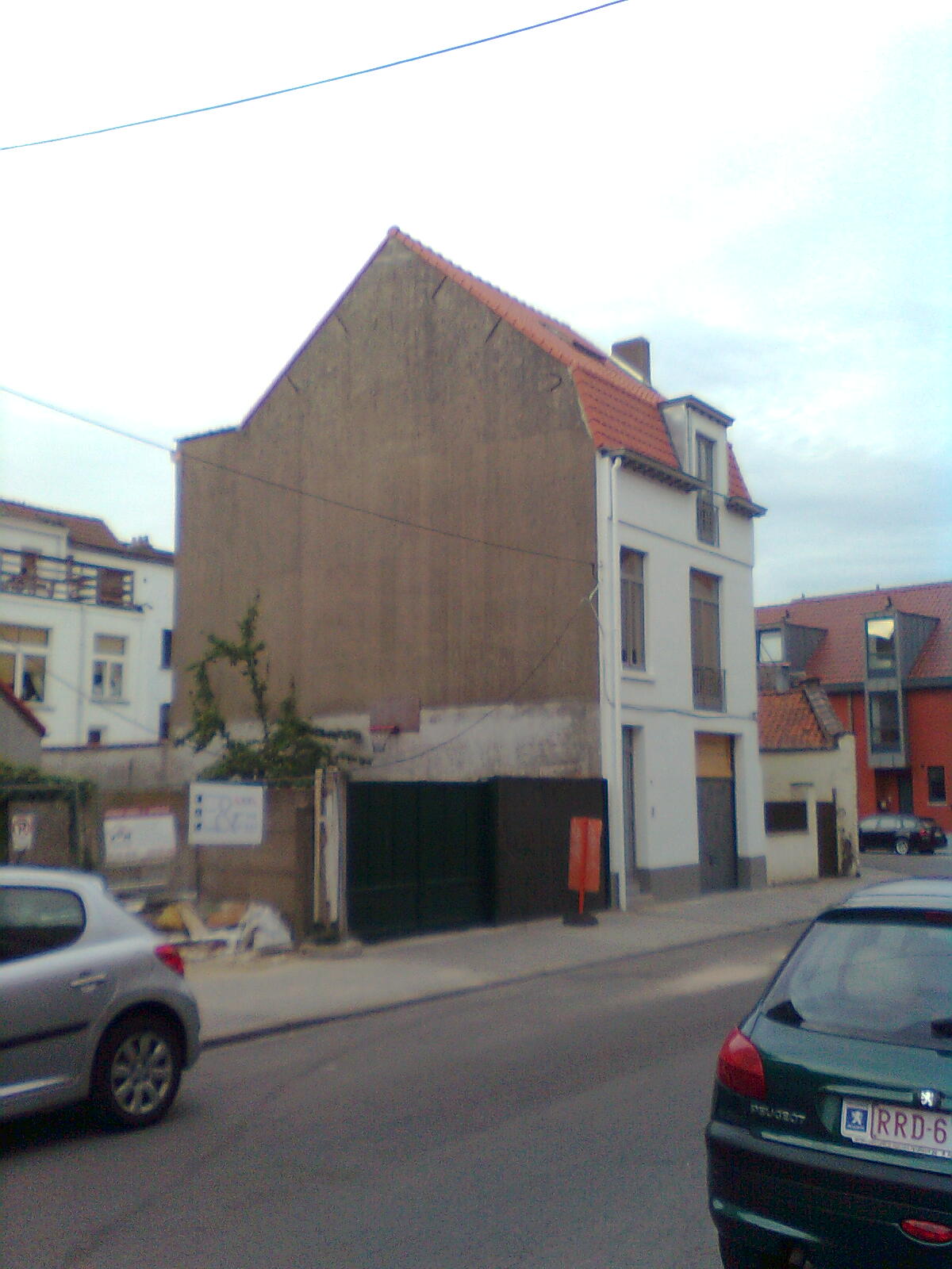Vue de côté. Une maison est en construction sur le terrain voisin.